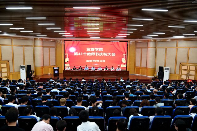 本站讯(学生记者 谌妤 记者 袁璐)金秋送爽,桃李芬芳。9月10日下午,宜春学院在教学主楼学术报告厅召开第41个教师节庆祝大会,以“以教育家精神铸魂强师,谱写教育强国建设华章”为主题,表彰先进典型、凝聚奋进力量,激励全校教职工勇担教育强国使命,推动学校高质量发展。全体校领导、副处级以上干部、师生代表等近400人齐聚一堂,共庆节日。荣获2024年度江西省科技进步二等奖的团队负责人林超博士、带领“医学美学”课程团队荣获2025年度国家级一流本科课程的周金娟老师和校领导在主席台就座。会议由校党委副书记、校长蔡海生主持。