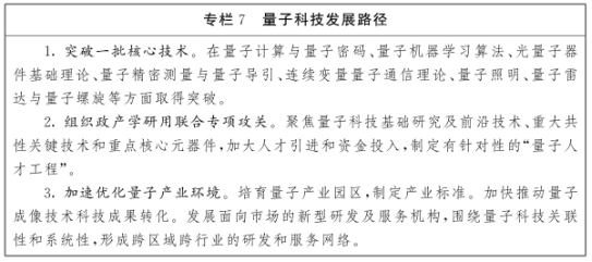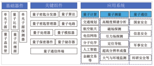 发展方向。围绕量子计算、量子通信和量子测量三大领域,以强化基础研究,推动应用突破为方向,加强成熟技术转移承接、中试,推进技术项目化、产业工程化,重点发展量子密钥分发器、量子路由器、量子交换机、量子随机数发生器、量子激光器、光量子探测仪等量子通信核心装备。