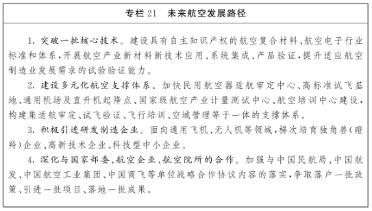 发展方向。筑强航空产业发展优势,拓展大飞机部件、机身集成制造以及航空电子发展能力,加快布局eVTOL(电动垂直起降航空器)等新兴产业领域,打造一批城市空间交通示范城市,建设通用航空业发展示范省。