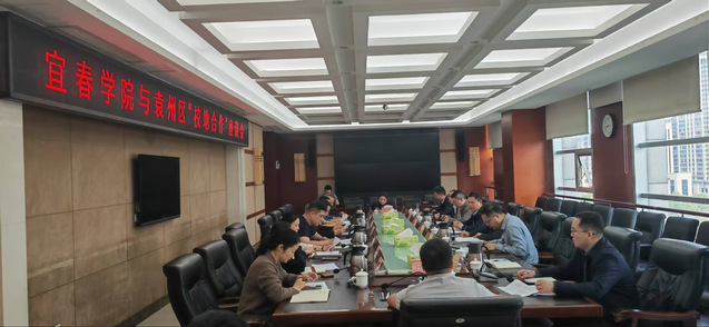 本站讯(科研处 供稿)为进一步推进我校与袁州区校地合作项目落地生根,4月9日,校党委副书记、校长蔡海生,校党委委员、副校长余新卫赴袁州区,与袁州区共同召开校地合作项目推进对接座谈会。袁州区委副书记、区长胡练康,区委常委、组织部部长沈郅及双方相关部门负责人参加了会议。袁州区委常委、组织部部长沈郅主持会议。